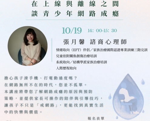 《在上線與離線之間談青少年網路成癮》2025.9.20擔心孩子滑手機、打電動太多嗎? 在這個網路隨處可見的時代,您並不孤單。 https://synergy0960.com/wp-content/uploads/2025/09/與橋2025心理健康講座-2.png 1350 1080 synergy0960908585 /wp-content/uploads/2025/06/logo-0606.png synergy09609085852025-09-20 16:37:232025-12-20 17:42:06《在上線與離線之間談青少年網路成癮》